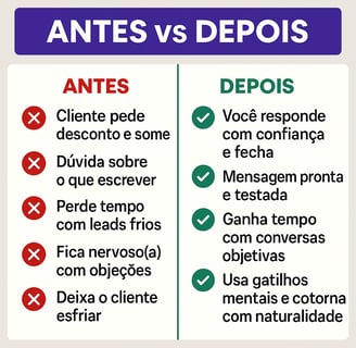 Com esses +70 scripts prontos, você vai saber exatamente o que dizer — em cada etapa da conversa — para transformar interesse em venda.