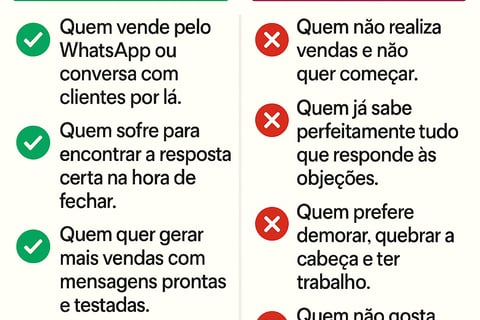 Use mensagens testadas para lidar com objeções, despertar interesse e fechar vendas direto no WhatsApp.